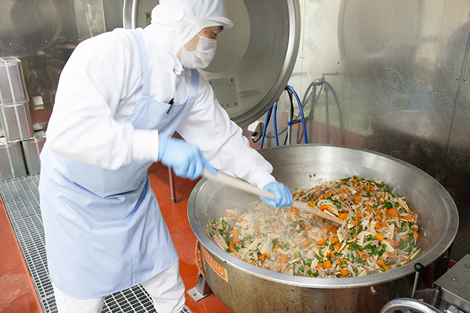 すべての調理・加工を衛生的に管理された工場で一括して行い、無駄を省き、安全で安心して召し上がっていただける食事を提供します。